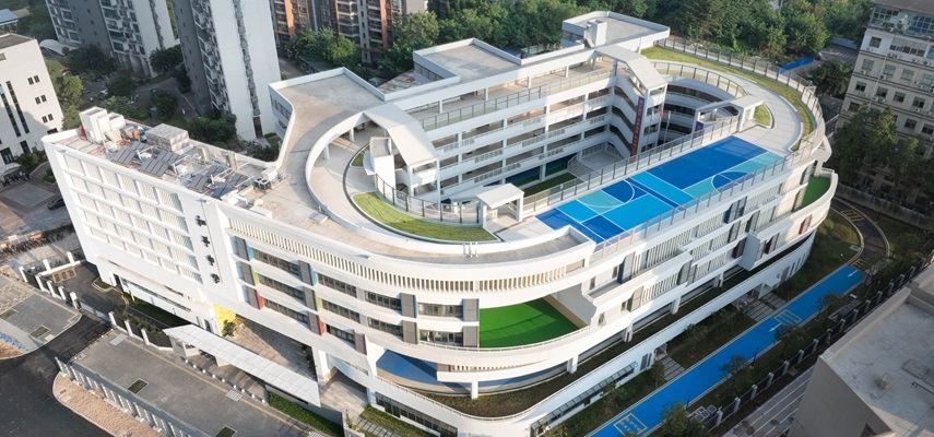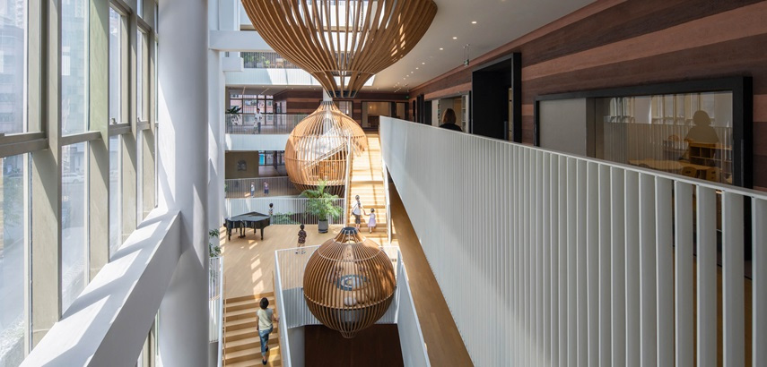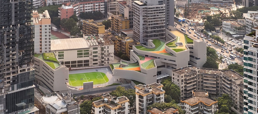 Occupying limited space in the urban Nanshen District in Shenzhen, China, is this new kindergarten.