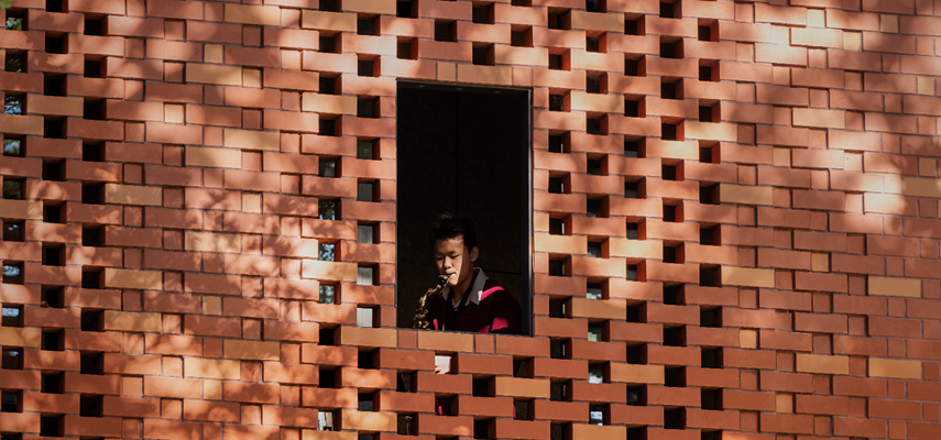 The school was built entirely from locally produced brick to relate to the traditional architecture of the city.