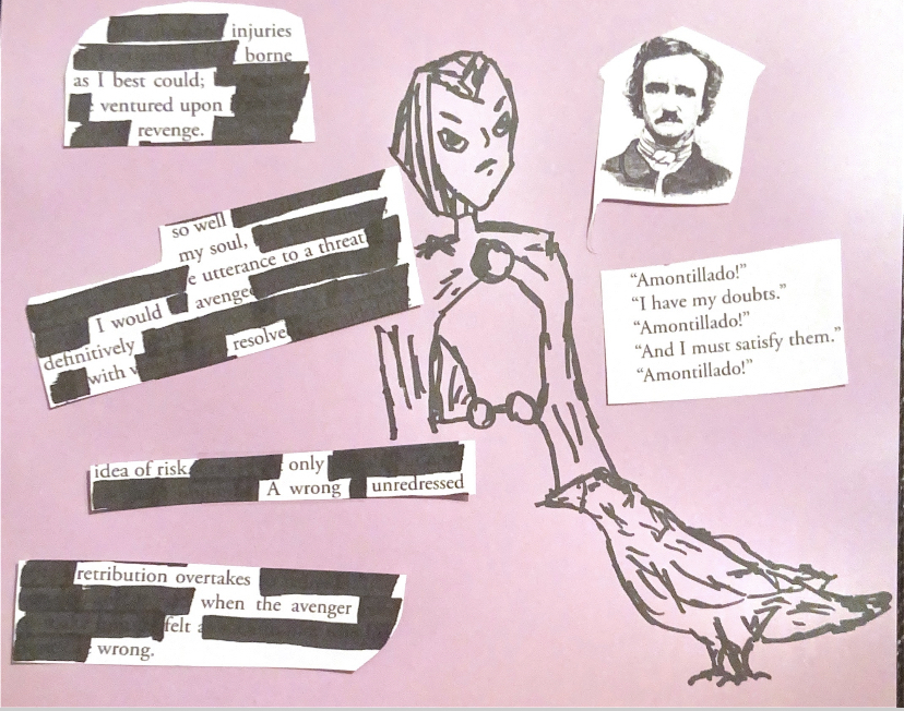 Student understandings of poetry are sometimes limited to the classic and difficult words of authors like Whitman, Emerson, and Shakespeare, among others. It is not only the case that students can benefit from encountering contemporary poetic voices in recent publications of stand-alone poems and verse novels (tip of the hat to Padma Venkatraman, Jasmine Warga, Jason Reynolds, Elizabeth Acevedo, KA Holt, and others), but it is also the case that fashioning poems from words found in texts can unlock verse composition for some students. The result can also be wonderful monochromatic hallway or classroom wall art.